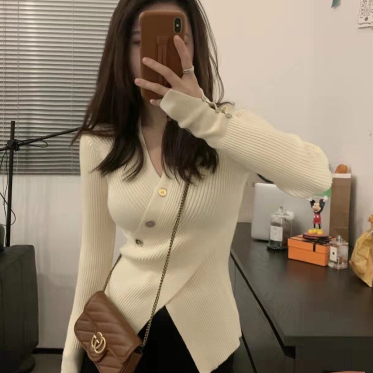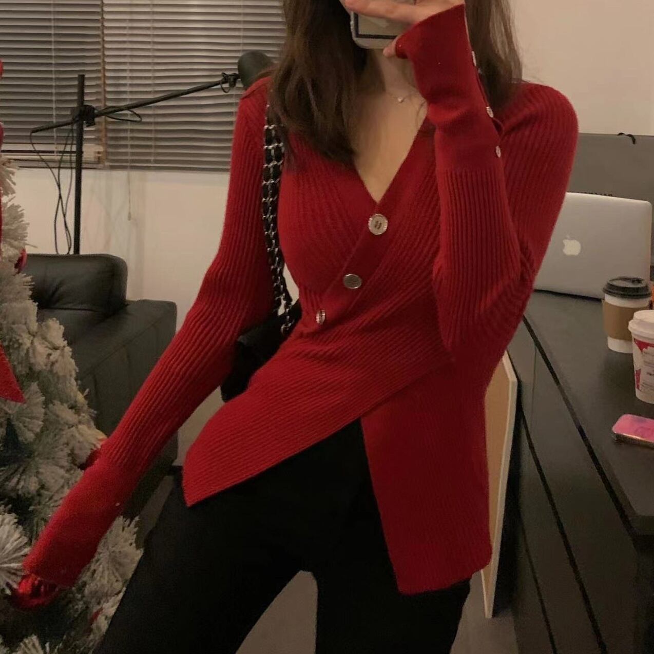 トップス カーディガン ニットカーディガン 長袖 Vネック 前開き ボタン クロスデザイン ミディアム丈 萌え袖 タイト かわいい 大人可愛い きれいめ シンプル 上品 おしゃれ かっこいい カジュアル こなれ感 個性的 主役級 存在感 抜け感 春 秋 ベーシック ナチュラル クール フェミニン 女性用 レディース ママ OL 通勤 オフィス 学生 通学 デート お出かけ お泊まり 女子会 旅行 休日 カフェ ショッピング イベント コンパ レイヤード 普段使い デイリー 着回し 重ね着 ワンサイズ モテ