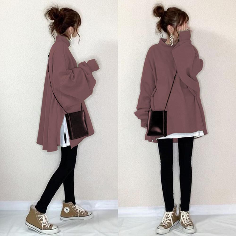 トップス トレーナー 長袖 タートルネック プルオーバー ミディアム丈 サイドスリット 重ね着風 かわいい 大人可愛い きれいめ シンプル 上品 おしゃれ かっこいい カジュアル こなれ感 個性的 主役級 存在感 抜け感 秋 冬 ベーシック ナチュラル キュート クール 無地 女性用 レディース ママ マタニティ OL 通勤 学生 通学 デート お出かけ お泊まり 女子会 旅行 休日 アウトドア カフェ ショッピング イベント レイヤード 普段使い デイリー 着回し 重ね着 ワンサイズ ゆったり