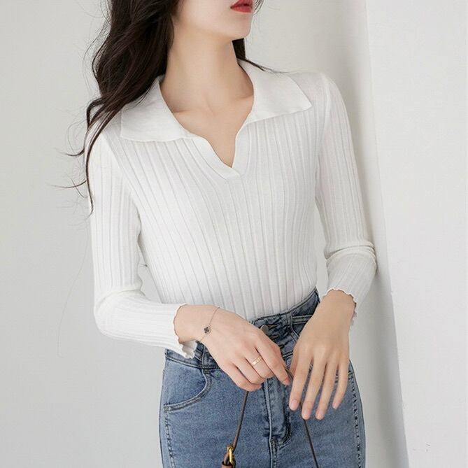 レディース トップス ニット セーター プルオーバー 長袖 襟付き 角襟 ポロカラー タイト スリム 細身 リブニット きれいめ シンプル カジュアル 上品 おしゃれ かっこいい メンズライク マニッシュ ボーイッシュ スポーティー クール ラブリー キュート カレッジ風 学生風 ベーシック カントリー ナチュラル 無地 秋 冬 デート お出かけ 休日 楽ちん 普段使い 着回し レイヤード 定番 S M L 小さいサイズ 大きいサイズ 白 ホワイト クリーム 黒 オフホワイト ベーシックカラー 大人カラー