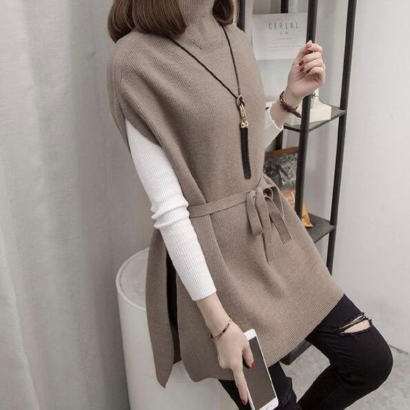 レディース トップス ニット セーター プルオーバー ベスト ロング 袖なし ノースリーブ ハイネック フェミニン ベルト ウエストマーク ウエストリボン バックリボン かわいい 大人可愛い きれいめ シンプル カジュアル 上品 おしゃれ かっこいい レトロ こなれ感 ラフ ガーリー ルーズ エレガント 抜け感 ラブリー キュート アクティブ ナチュラル 無地 春 秋 重ね着 普段使い 着回し 定番 M L XL 2XL 3XL 小さいサイズ 大きいサイズ 黒 ブラック 茶色 ブラウン グレー ベージュ