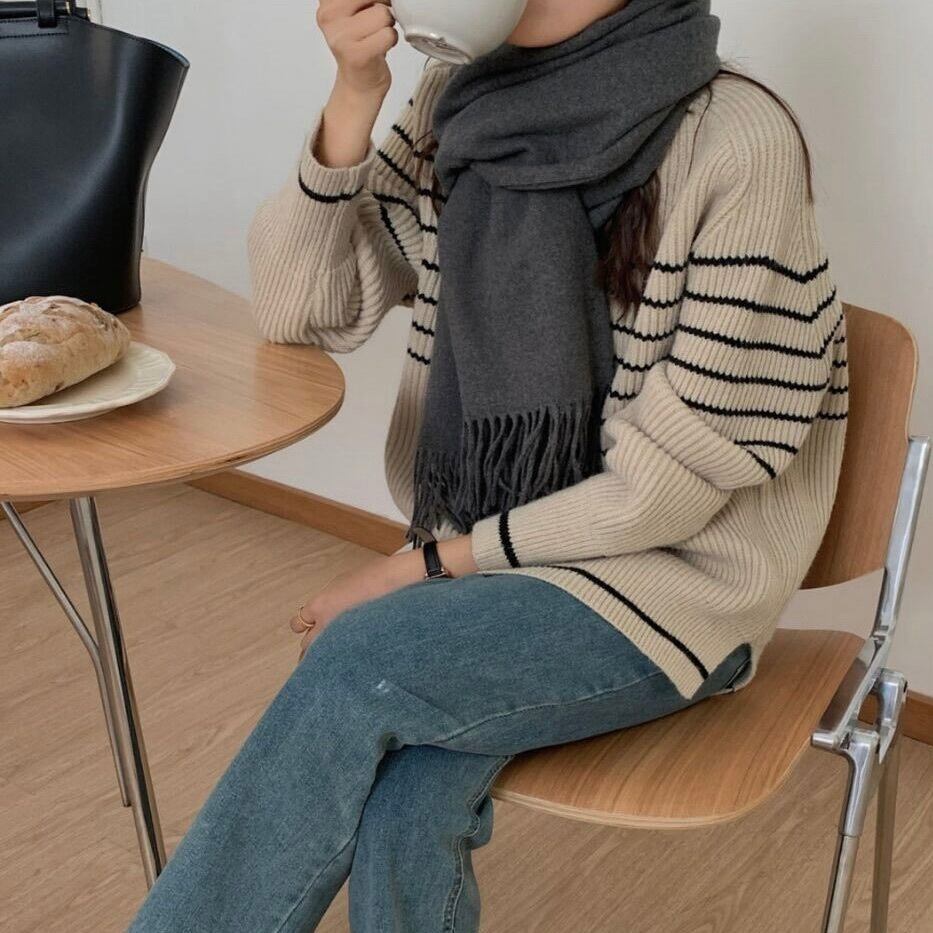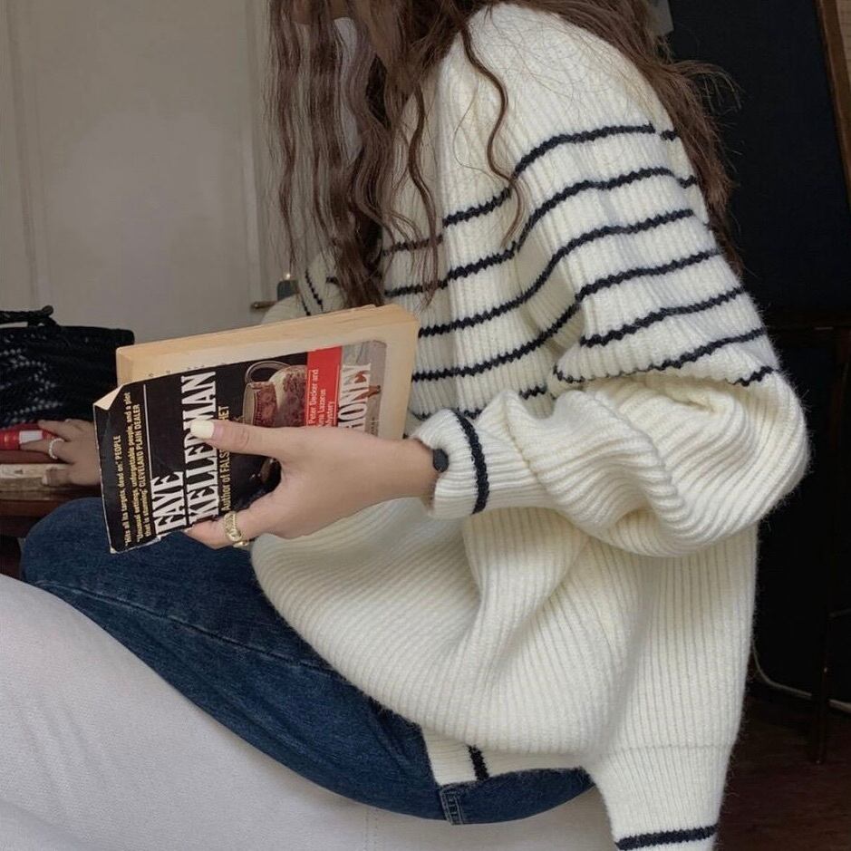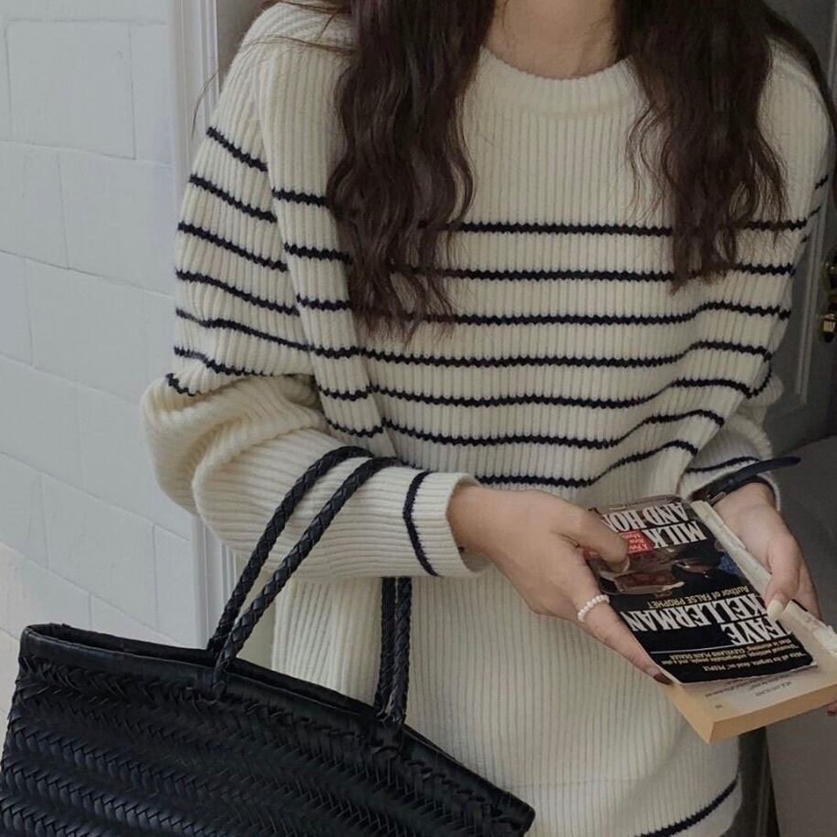 レディース トップス ニット セーター プルオーバー 長袖 Uネック ラウンドネック オーバーサイズ かわいい 大人可愛い きれいめ シンプル カジュアル 上品 おしゃれ かっこいい レトロ こなれ感 ラフ メンズライク マニッシュ 抜け感 ヴィンテージ ラブリー キュート ベーシック アクティブ ナチュラル ボーダー 秋 冬 デート お出かけ イベント 旅行 女子会 休日 ショッピング 重ね着 お揃い 双子 韓国 オルチャン 普段使い 着回し レイヤード 定番 フリーサイズ 白 ホワイト 黒 ブラック