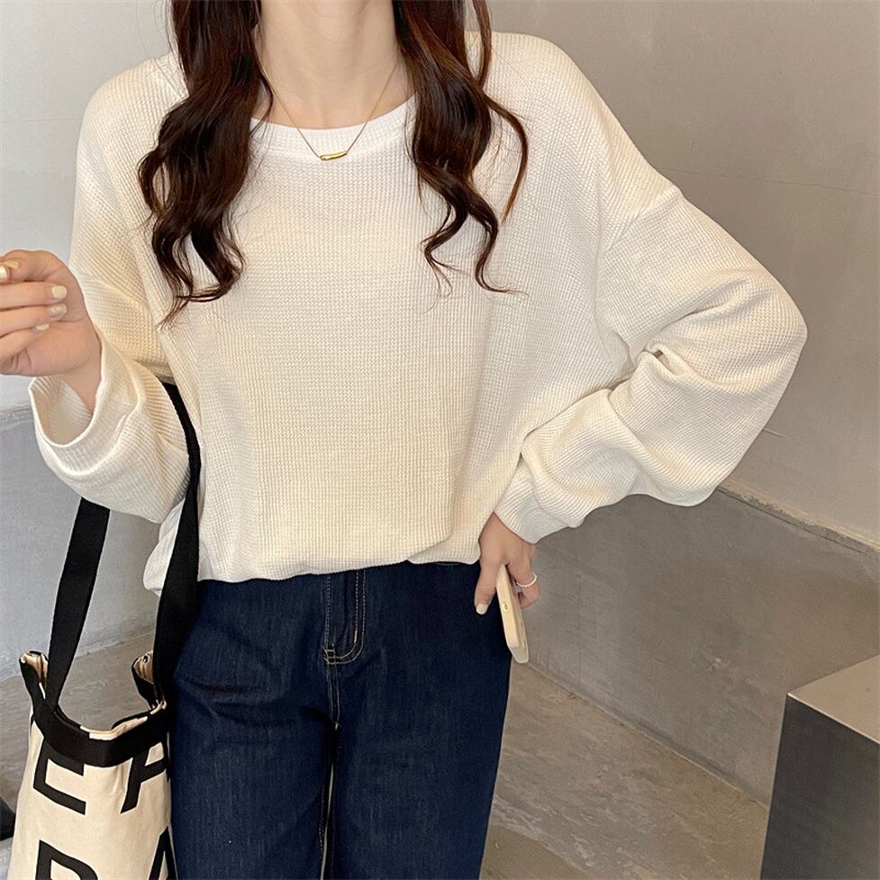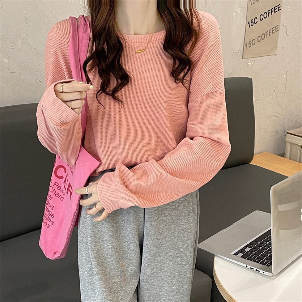 トップス シャツ カットソー Tシャツ 長袖カットソー 長袖Tシャツ ワッフルTシャツ ラウンドネックシャツ ラウンドネック 長袖 ドロップショルダー オーバーサイズ 無地 レディース かわいい 大人可愛い おしゃれ ガーリー エレガント 主役級 存在感 キュート きれいめ 上品 シンプル カジュアル マニッシュ 通勤 通学 デート お出かけ イベント 旅行 女子会 休日 ショッピング 体型カバー ゆったり フェミニン