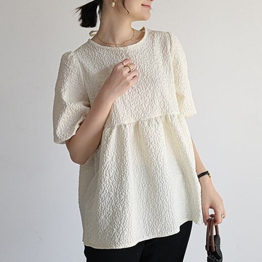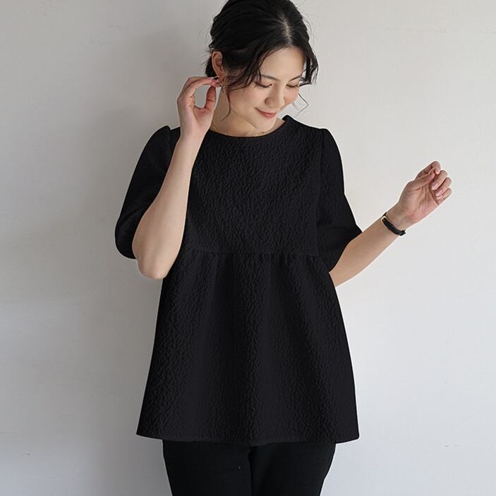 トップス ブラウス 5分袖 ボリューム袖 ラウンドネック プルオーバー ミディアム丈 ペプラム 切り替えデザイン かわいい 大人可愛い きれいめ シンプル 上品 おしゃれ かっこいい カジュアル こなれ感 個性的 主役級 存在感 抜け感 春 夏 ベーシック ナチュラル キュート フェミニン 女性用 レディース ママ マタニティ OL 通勤 オフィス 学生 通学 デート お出かけ お泊まり 女子会 旅行 休日 アウトドア カフェ ショッピング イベント 普段使い デイリー 着回し 重ね着 M L ゆったり