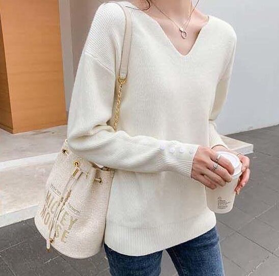 レディース トップス ニット セーター プルオーバー 長袖 Vネック フェミニン ストリート ボタン かわいい 大人可愛い きれいめ シンプル カジュアル 上品 おしゃれ かっこいい レトロ こなれ感 ラフ 抜け感 ヴィンテージ ラブリー キュート ベーシック ナチュラル 無地 お出かけ 休日 ショッピング 重ね着 お揃い 双子 楽ちん 暖かい 防寒 普段使い 着回し レイヤード トレンド 定番 フリーサイズ 白 ホワイト 黒 ブラック 茶色 ブラウン ベージュ ベーシックカラー オフホワイト カラバリ
