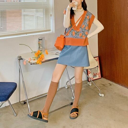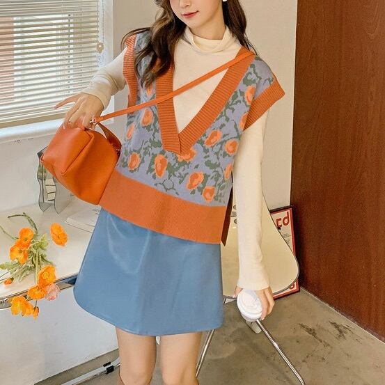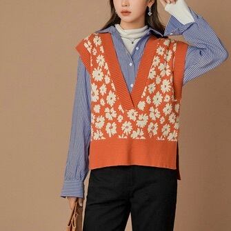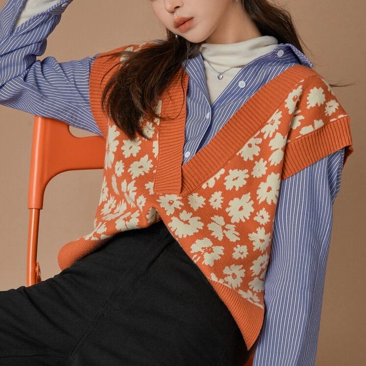 レディース トップス ニット プルオーバー ベスト 袖なし ノースリーブ Vネック フェミニン バイカラー 配色 かわいい 大人可愛い きれいめ シンプル カジュアル 上品 おしゃれ レトロ こなれ感 ガーリー ヴィンテージ ラブリー キュート クラシカル アクティブ ロマンティック ナチュラル 花柄 フラワー デート お出かけ イベント 旅行 女子会 休日 重ね着 韓国 オルチャン 楽ちん 普段使い 着回し レイヤード 清楚 トレンド 流行 インスタ映え 定番 S M L XL オレンジ 水色 ブルー