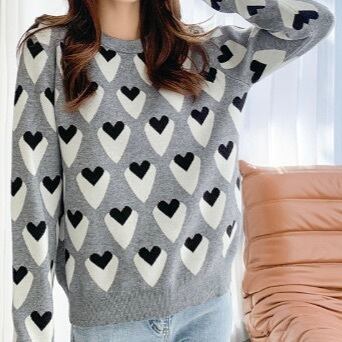 ハート柄がロマンティックに映える大人可愛いニットトップス。