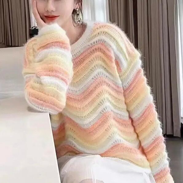 レディース ニット セーター プルオーバー 長袖 Uネック ラウンドネック オーバーサイズ フェミニン もこもこ ふわふわ ふっくら かわいい 大人可愛い おしゃれ レトロ こなれ感 ガーリー 抜け感 ヴィンテージ ラブリー キュート ロリータ ラグジュアリー クラシカル ロマンティック ナチュラル ボーダー 秋 冬 デート お出かけ コンサート ライブ 韓国 楽ちん 普段使い 着回し トレンド 流行 インスタ映え ゆったり ゆる フリーサイズ 紫 ピンク オレンジ パステル 緑 グリーン パープル