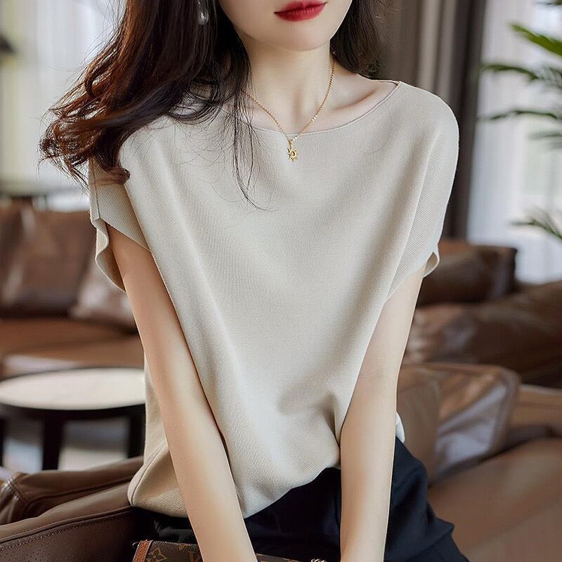 フレンチスリーブサマーニットトップス。