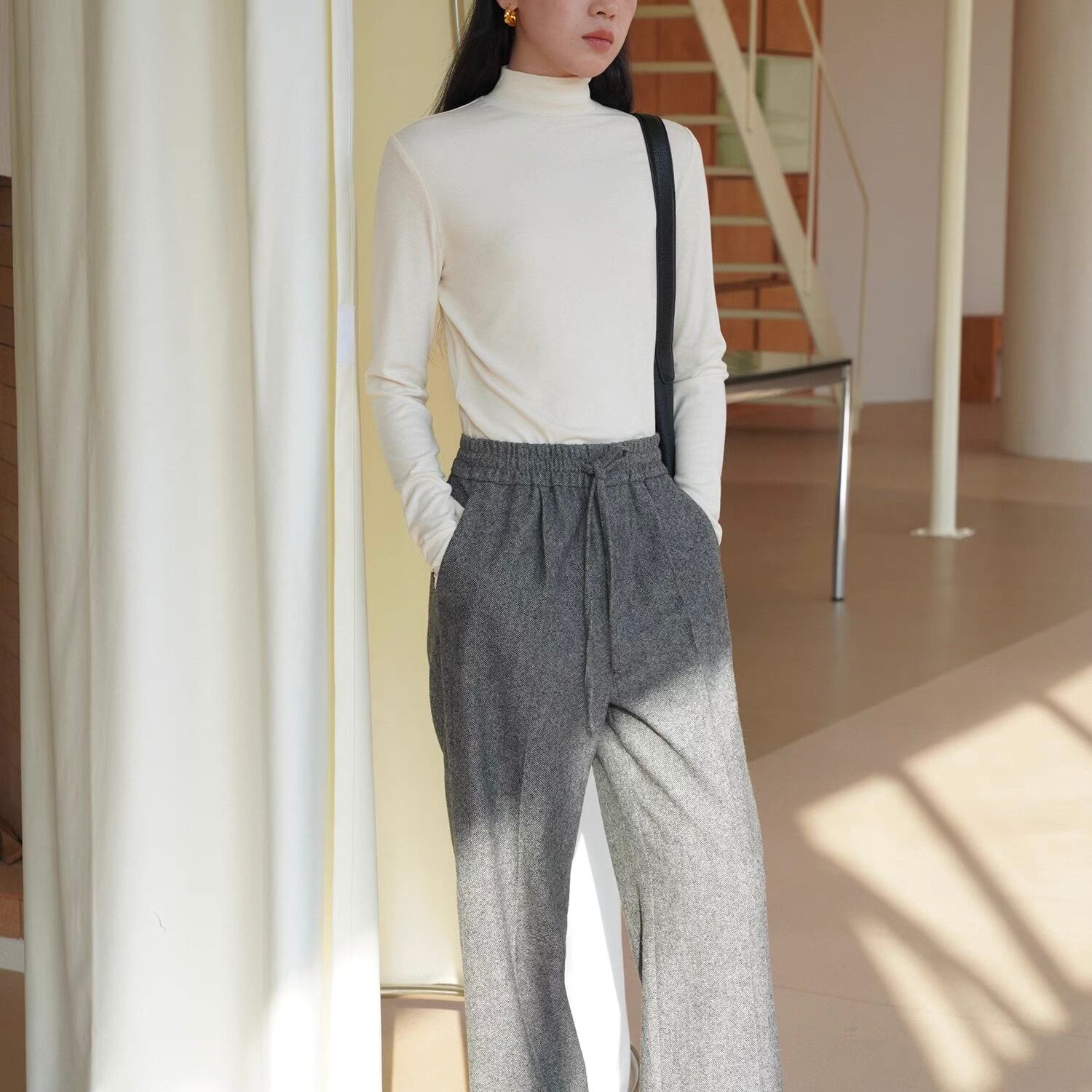シンプルなのにこなれ感たっぷり、着回し力抜群のハイネックカットソー。