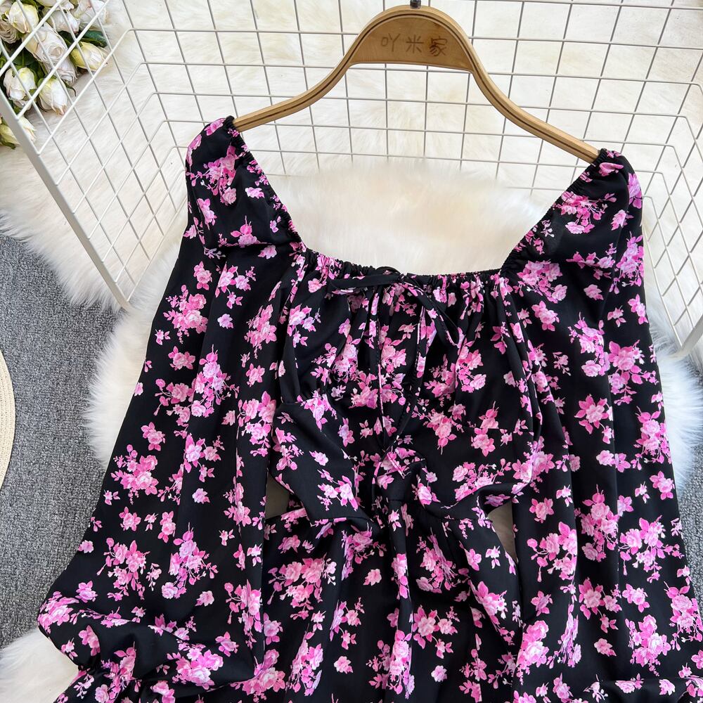 レディース ワンピース ミモレ ミディ丈 長袖 パフスリーブ スクエアネック 襟なし スリム Aライン フェミニン ウエストマーク スリット ハイウエスト かわいい 大人可愛い きれいめ 上品 おしゃれ ガーリー エレガント 存在感 クラシカル ロマンティック 花柄 フラワー 春 秋 10代 20代 学生 学校 通学 デート お出かけ レストラン 女子会 休日 コーデ 楽ちん 体型カバー 脚長 モテ 清楚 インスタ映え フリーサイズ ワンサイズ 白 黒 ブラック 水色 ブルー 緑 グリーン カラバリ