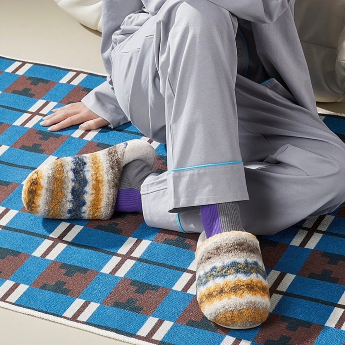 愛らしいチェックデザインが特徴的で、室内でのリラックスタイムをより楽しいものにしてくれること間違いなし。