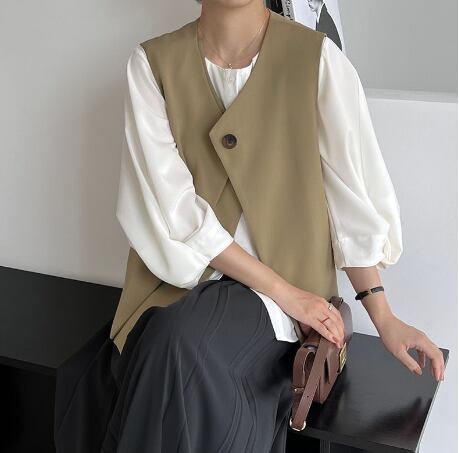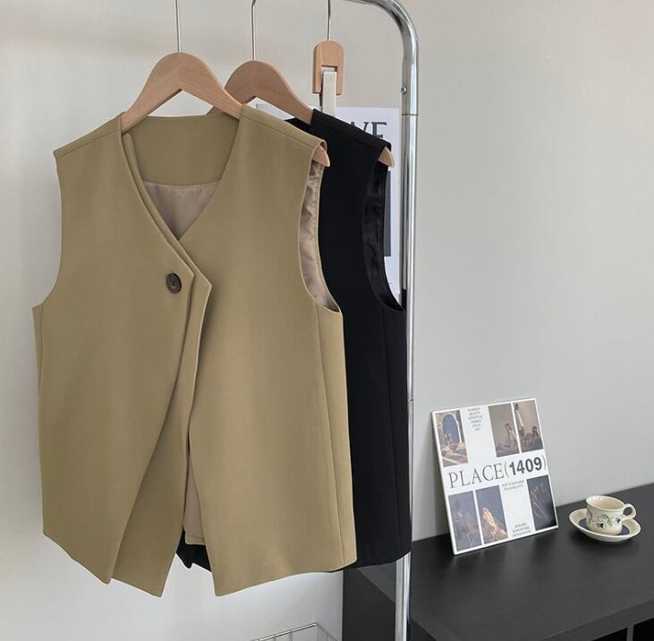 レディース ベスト 上着 羽織 前開き 普通丈 袖なし ノースリーブ Vネック 襟なし ワイド ストレート きれいめ シンプル カジュアル 上品 おしゃれ かっこいい こなれ感 ラフ 個性的 主役級 存在感 抜け感 都会的 ベーシック ナチュラル 無地 秋 デート お出かけ 旅行 女子会 ショッピング カフェ 重ね着 コーデ 楽ちん 普段使い 着回し モテ 清楚 トレンド 流行 インスタ映え 定番 S M L XL ゆったり ブラック カーキ ベーシックカラー 大人カラー 秋カラー カラバリ