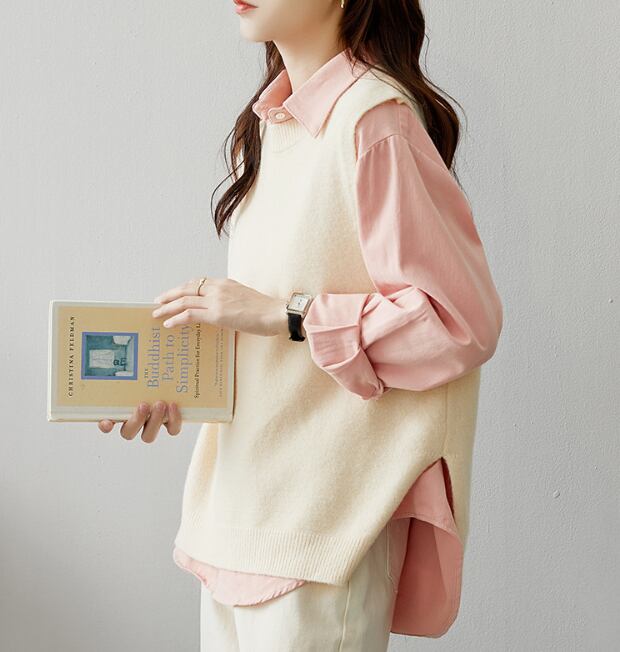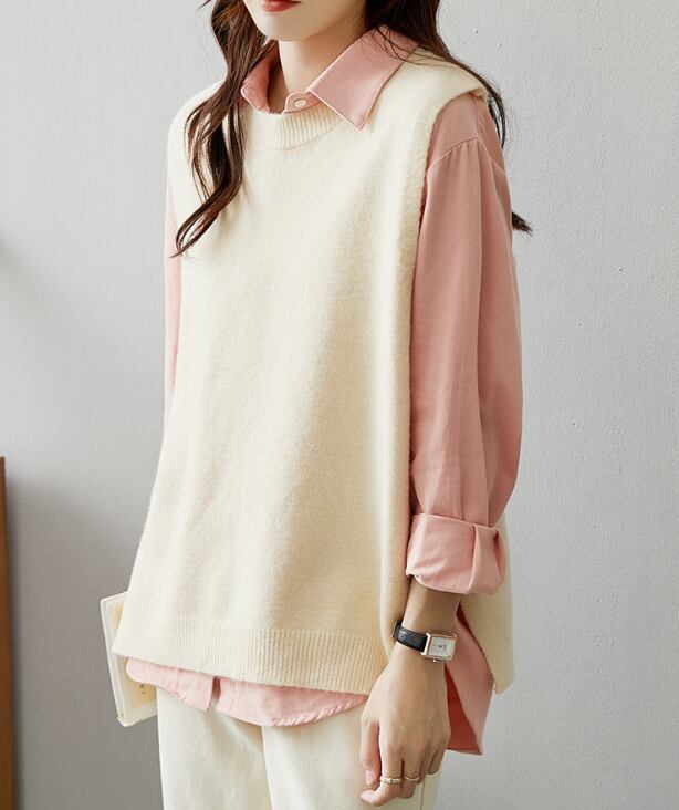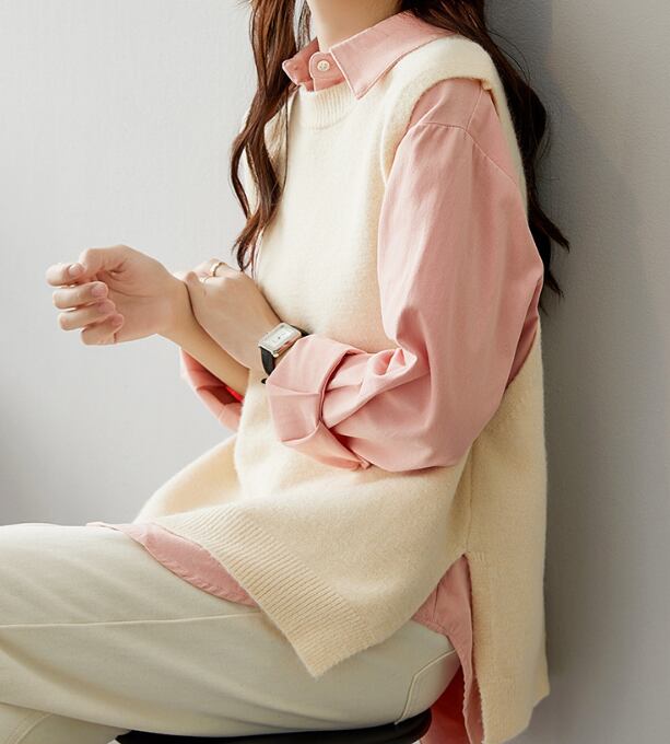 レディース トップス ブラウス プルオーバー ベスト 2点セット 羽織 前開き 丈長 袖なし ノースリーブ 長袖 ラウンドネック ワイド フェミニン 大人可愛い きれいめ シンプル カジュアル 上品 おしゃれ こなれ感 ラフ 主役級 存在感 都会的 ベーシック ナチュラル 無地 春 デート お出かけ 旅行 女子会 ショッピング カフェ 重ね着 コーデ 楽ちん 普段使い 着回し モテ 清楚 トレンド 流行 インスタ映え 定番 S M L XL ピンク アプリコット ベーシックカラー 大人カラー 春カラー