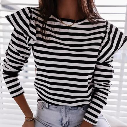 レディース トップス カットソー プルオーバー 長袖 ラウンドネック スリム 細身 ストレート フェミニン フリル バイカラー 伸縮性 かわいい 大人可愛い シンプル カジュアル おしゃれ レトロ こなれ感 ベーシック ボーダー 春 秋 ママ 10代 20代 30代 オフィス ビジネス OL 通勤 学生 学校 通学 デート お出かけ 公園 女子会 休日 ショッピング カフェ お揃い 双子 韓国 オルチャン コーデ 普段使い 着回し モテ 定番 S M L XL 2XL 白 ホワイト 黒 ブラック レッド