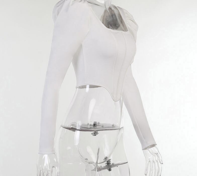 レディース トップス カットソー プルオーバー ショート丈 長袖 パフスリーブ スクエアネック 襟なし タイト スリム 細身 きれいめ シンプル カジュアル おしゃれ かっこいい こなれ感 ラフ 個性的 クール モード系 モダン 主役級 存在感 都会的 ベーシック ナチュラル 無地 セクシー 春 デート お出かけ 女子会 ショッピング カフェ 普段使い 着回し モテ トレンド 流行 インスタ映え 定番 S M L サイズ展開 ホワイト ブラック カーキ ベーシックカラー 大人カラー カラバリ