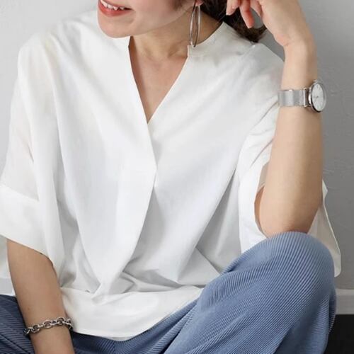 ゆったりシルエット×Vネックで、上品さと抜け感を演出する大人のカットソー。