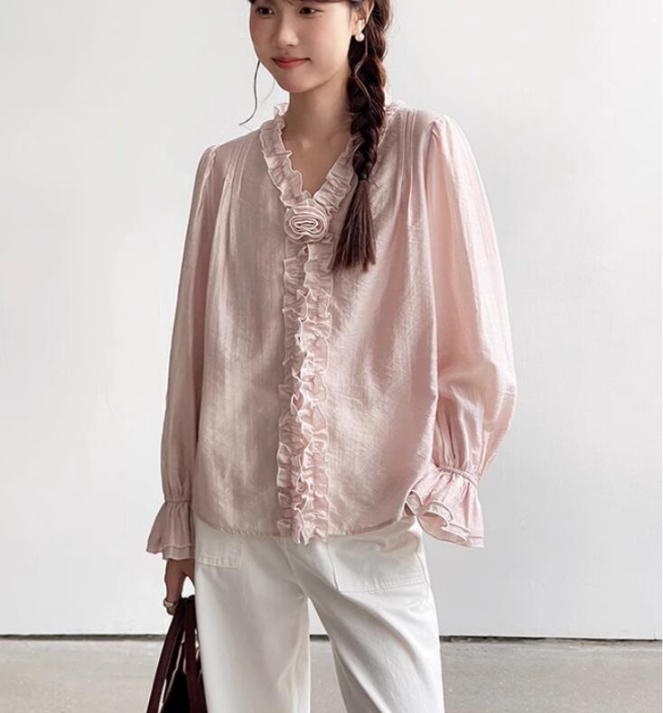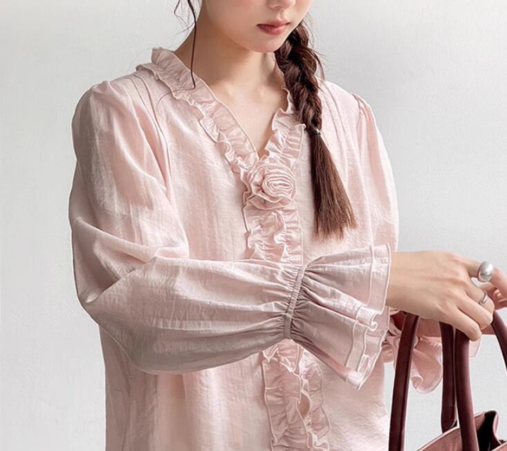 レディース トップス ブラウス 普通丈 長袖 フリル袖 Vネック 襟なし フレア フェミニン シフォン フリル 薄手 かわいい 大人可愛い きれいめ シンプル カジュアル 上品 おしゃれ こなれ感 ラフ ガーリー 主役級 存在感 ラブリー キュート 都会的 ベーシック ナチュラル 無地 春 夏 デート お出かけ 女子会 休日 ショッピング カフェ 普段使い 着回し モテ 清楚 トレンド 流行 インスタ映え 定番 ワンサイズ フリーサイズ ピンク アプリコット ベーシックカラー 大人カラー カラバリ