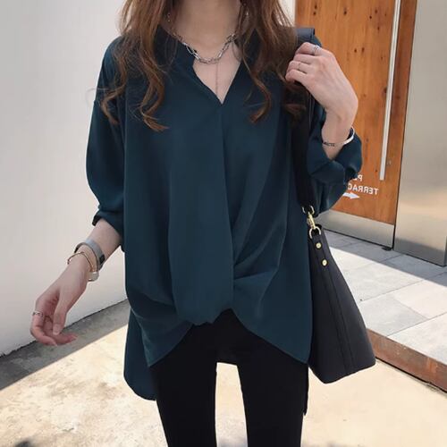 レディース トップス カットソー プルオーバー 丈長 長袖 Vネック 襟なし ワイド フェミニン きれいめ シンプル カジュアル 上品 おしゃれ こなれ感 ラフ 個性的 クール モード系 エレガント モダン 主役級 存在感 都会的 ベーシック ナチュラル 無地 秋 冬 デート お出かけ 女子会 休日 ショッピング カフェ モノトーン モテ 清楚 トレンド 流行 インスタ映え 定番 M L XL 2XL 3XL 4XL ゆったり サイズ展開 ホワイト ネイビー ベーシックカラー 大人カラー ダークグリーン
