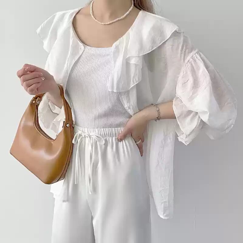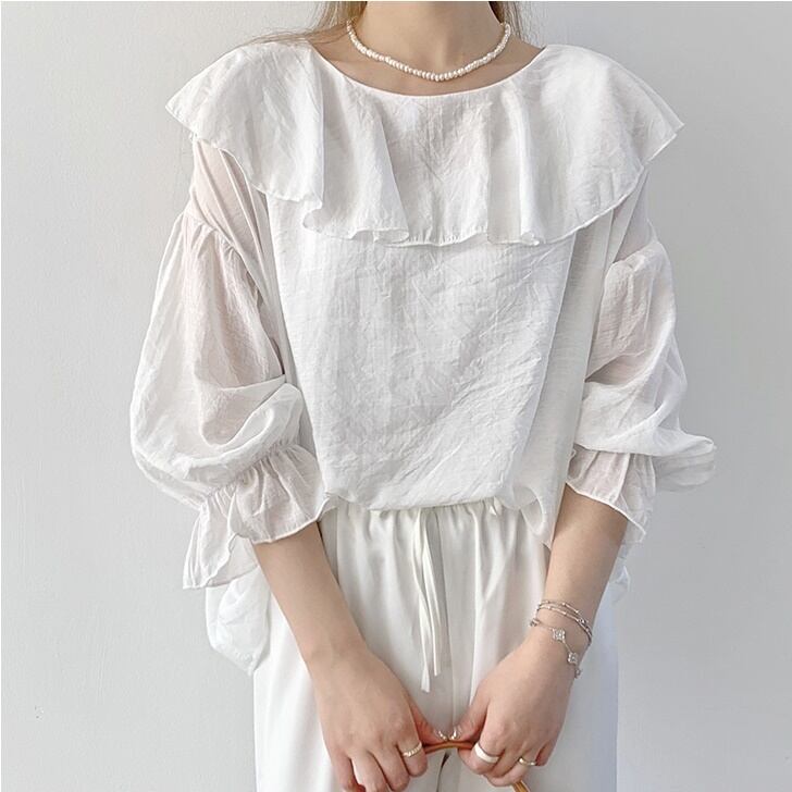 バルーン袖がフェミニンな印象を与え、どんなシーンでも活躍するアイテムです。