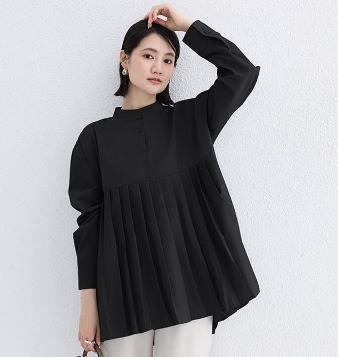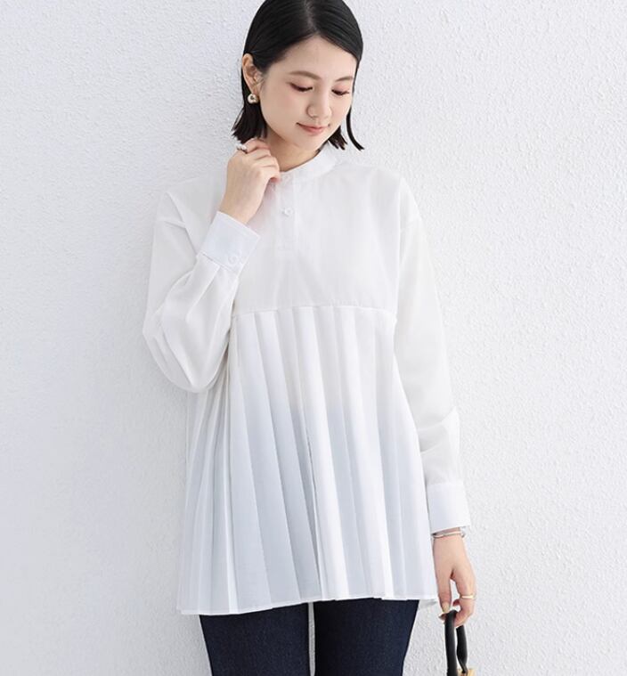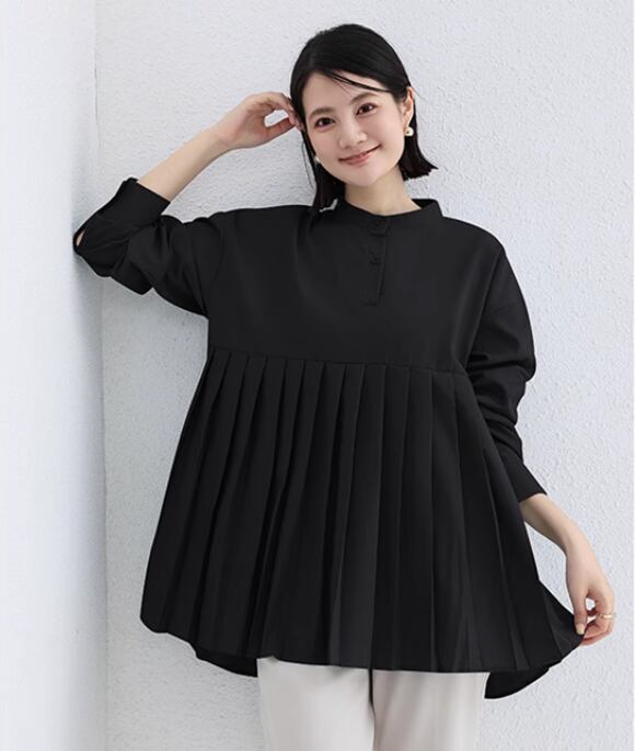 レディース トップス シャツ カットソー 丈長 長袖 襟なし ワイド フレア フェミニン プリーツ きれいめ シンプル カジュアル 上品 おしゃれ こなれ感 ラフ 個性的 クール モード系 エレガント 主役級 存在感 都会的 ベーシック ナチュラル 無地 春 秋 デート お出かけ 女子会 休日 ショッピング カフェ 普段使い 着回し モテ 清楚 トレンド 流行 インスタ映え 定番 ゆったり ワンサイズ フリーサイズ ホワイト ブラック ブラウン ブルー ベーシックカラー 大人カラー カラバリ