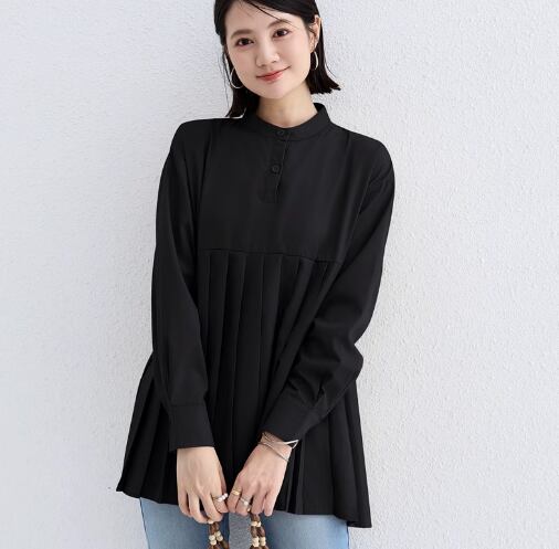 ふんわり広がるフレアシルエットと繊細なプリーツが、上品さと存在感を演出するフェミニントップス。
