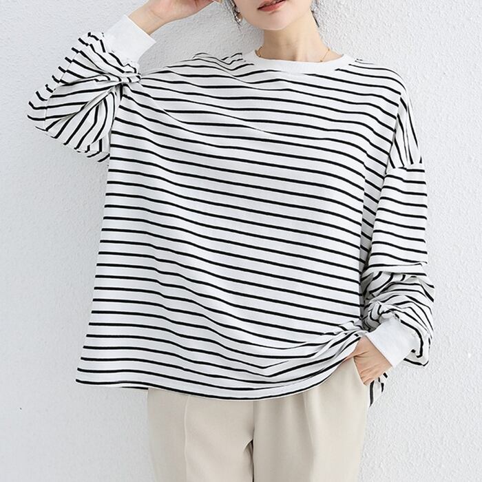 レディース トップス プルオーバー トレーナー 普通丈 長袖 クルーネック 襟なし ワイド ストリート きれいめ シンプル カジュアル 上品 おしゃれ こなれ感 ラフ モダン 主役級 存在感 都会的 ベーシック ナチュラル 無地 ストライプ 秋 冬 ロングシーズン デート お出かけ 公園 女子会 休日 ショッピング カフェ 普段使い 着回し モテ 清楚 トレンド 流行 インスタ映え 定番 M L ゆったり ホワイト ブラック ブラウン グレー アプリコット ベーシックカラー 大人カラー カラバリ