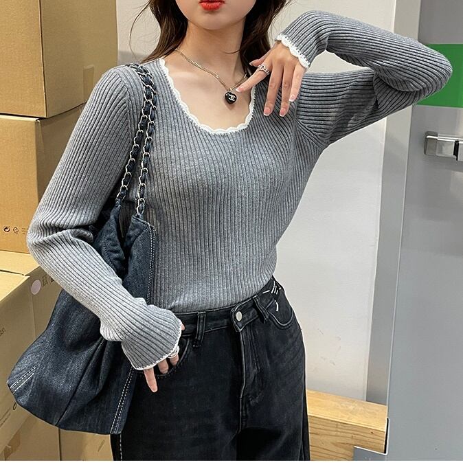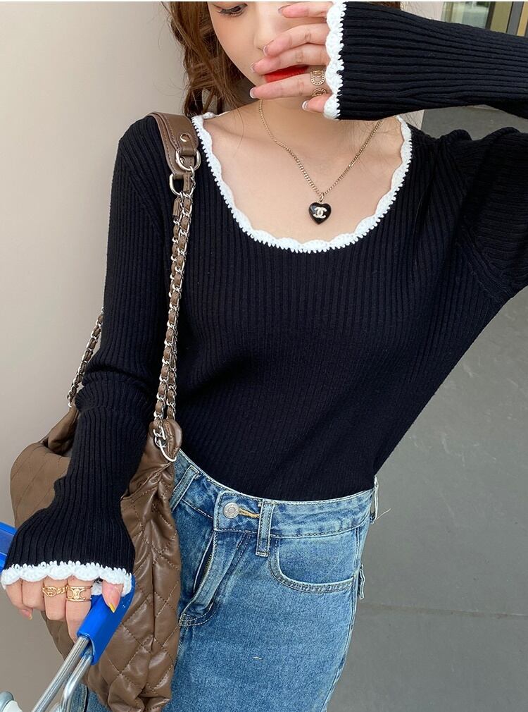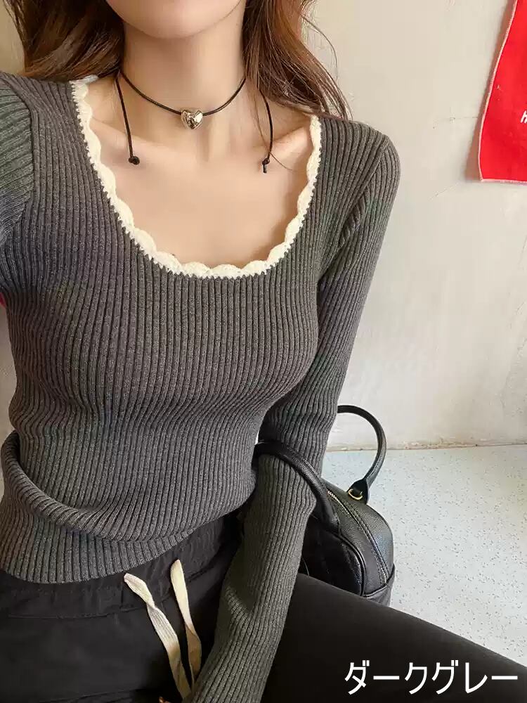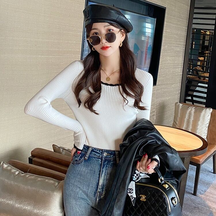 レディース トップス ニット セーター 長袖 ラウンドネック スリム 細身 ストレート フェミニン リブ バイカラー 配色 かわいい 大人可愛い きれいめ シンプル 上品 おしゃれ かっこいい ガーリー 個性的 抜け感 ラブリー キュート 都会的 デート お出かけ お泊まり パーティー イベント 旅行 レストラン 女子会 休日 ホテル ガーデン ショッピング コンサート ライブ 合コン コンパ カフェ 韓国 オルチャン コーデ 楽ちん 暖かい 普段使い 着回し モテ 清楚 トレンド 流行 インスタ映え 定