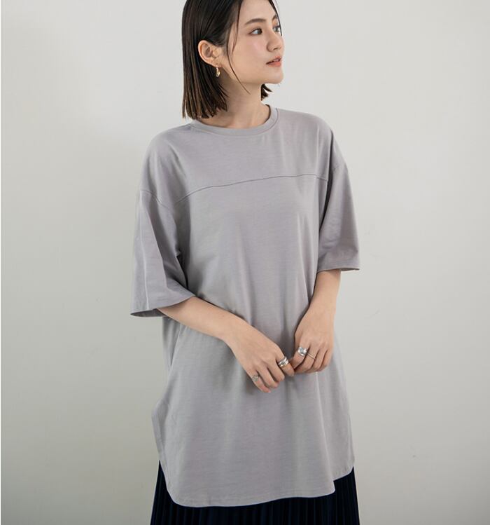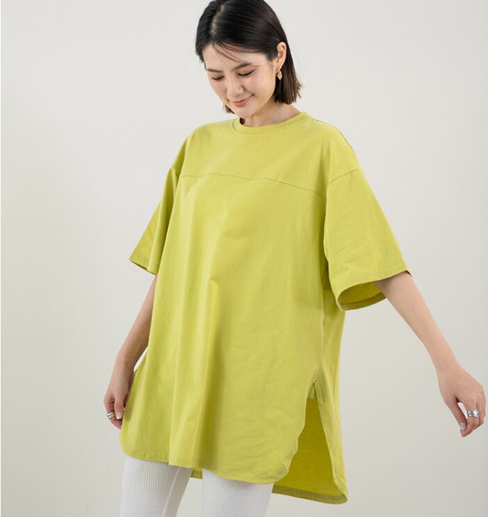 レディース トップス カットソー プルオーバー Tシャツ 丈長 半袖 クルーネック 襟なし ワイド シンプル カジュアル 上品 おしゃれ こなれ感 ラフ 主役級 存在感 都会的 ベーシック ナチュラル 無地 春 夏 ロングシーズン デート お出かけ 女子会 休日 ショッピング カフェ コーデ 楽ちん 普段使い 着回し モテ 清楚 トレンド 流行 インスタ映え 定番 ゆったり ワンサイズ ホワイト ブラック ライトグレー ダークグレー ブルー ベーシックカラー 大人カラー カラバリ イエローグリーン