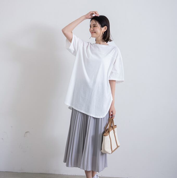 ゆったりワイドなシルエットで体型カバーも叶う、着心地抜群の半袖カットソー。