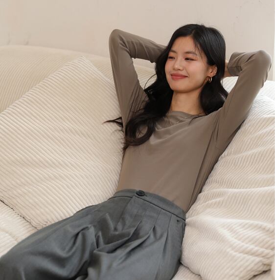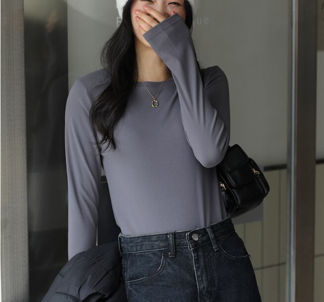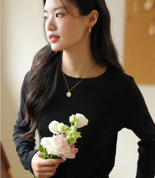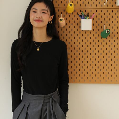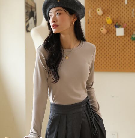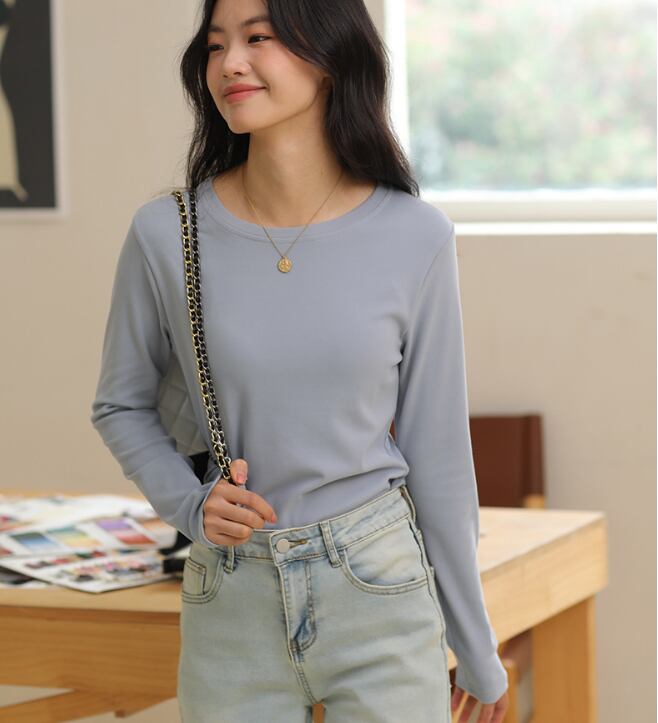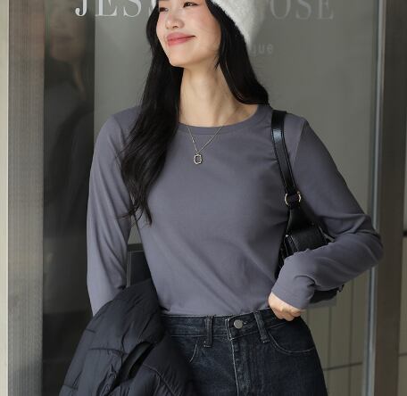 シンプルなのに計算されたタイトシルエットで、1枚でも重ね着でもサマになる優秀トップス。ラウンドネックと無地デザインが上品さと抜け感を演出し、普段使いはもちろん、女子会やカフェデートにも◎。