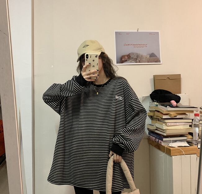 レディース トップス プルオーバー パーカー Tシャツ 丈長 長袖 ラウンドネック 襟なし ワイド 大人可愛い シンプル カジュアル 上品 おしゃれ こなれ感 ラフ 主役級 存在感 都会的 ベーシック ナチュラル ボーダー ストライプ 秋 冬 ロングシーズン デート お出かけ 女子会 休日 ショッピング カフェ 楽ちん 体型カバー 普段使い 着回し モテ 清楚 トレンド 流行 インスタ映え 定番 M L XL 2XL ゆったり ゆる ブラック アプリコット ベーシックカラー 大人カラー カラバリ
