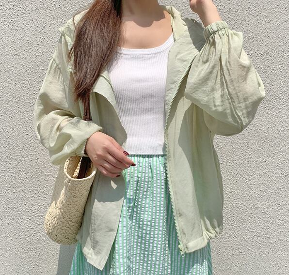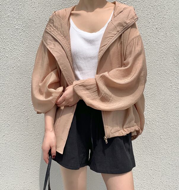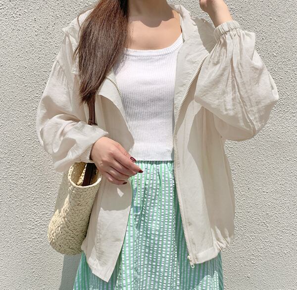 さらっと羽織れる薄手素材で、春夏にぴったりのフード付きアウター。