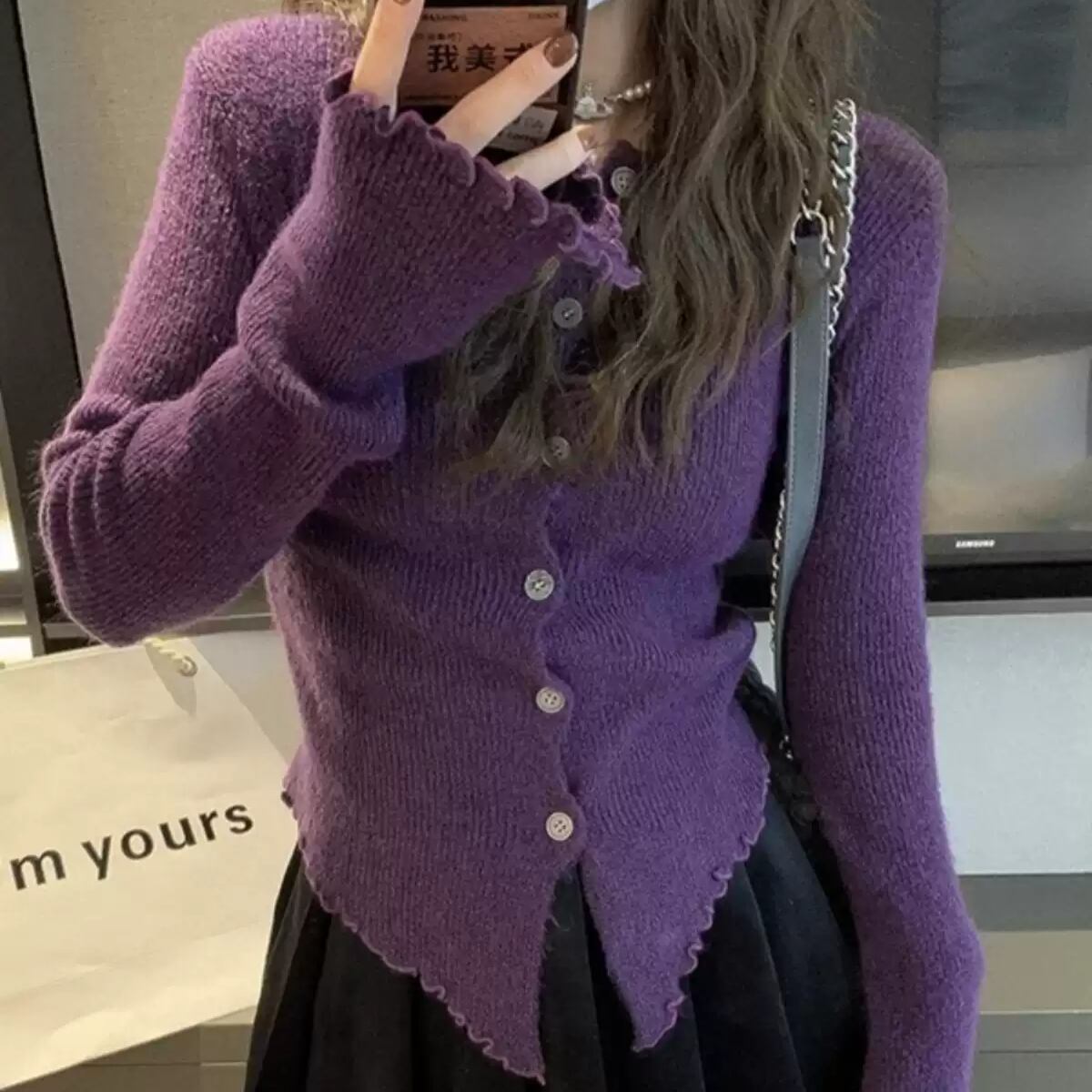 大人可愛いニットカーディガン。