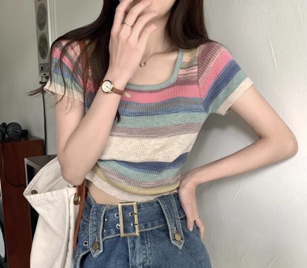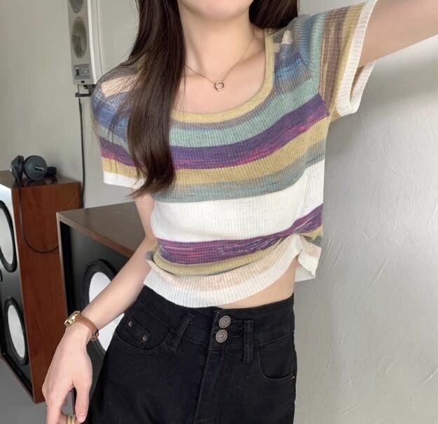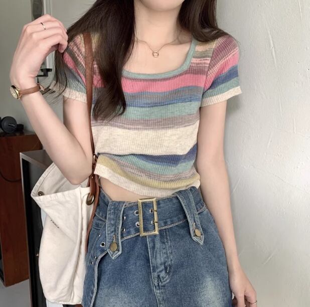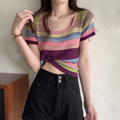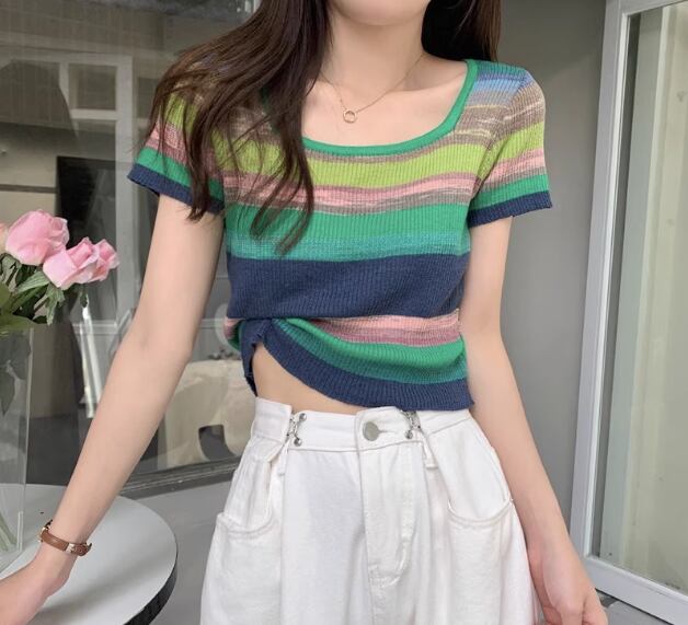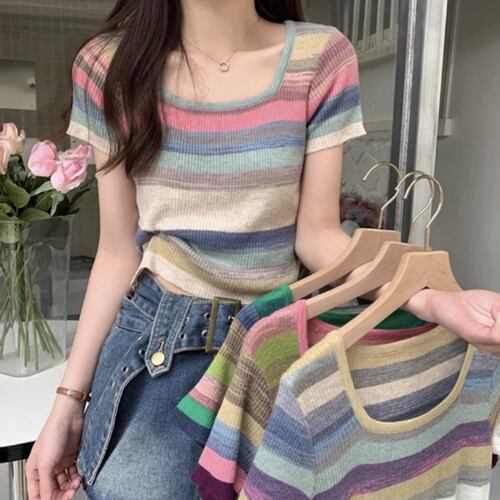 レディース トップス カットソー プルオーバー ショート丈 半袖 スクエアネック 襟なし タイト スリム 細身 大人可愛い カジュアル おしゃれ こなれ感 ラフ 個性的 主役級 存在感 都会的 ベーシック ナチュラル ボーダー 春 夏 ロングシーズン デート お出かけ 女子会 休日 ショッピング カフェ 普段使い 着回し モテ トレンド 流行 インスタ映え 定番 S M L XL サイズ展開 イエロー ピンク ブルー グリーン ベーシックカラー 大人カラー 春カラー カラバリ レインボーカラー