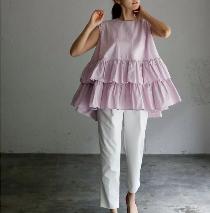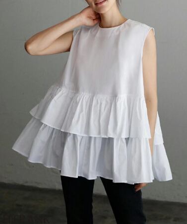 体型カバーも叶う、ゆったりシルエットのノースリーブカットソー。