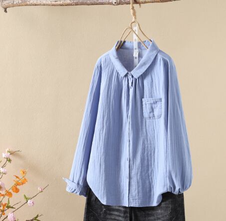 軽やかな薄手素材で、春夏にぴったりな長袖シャツ。