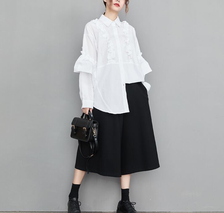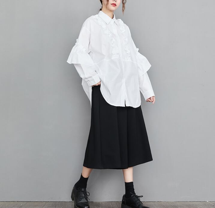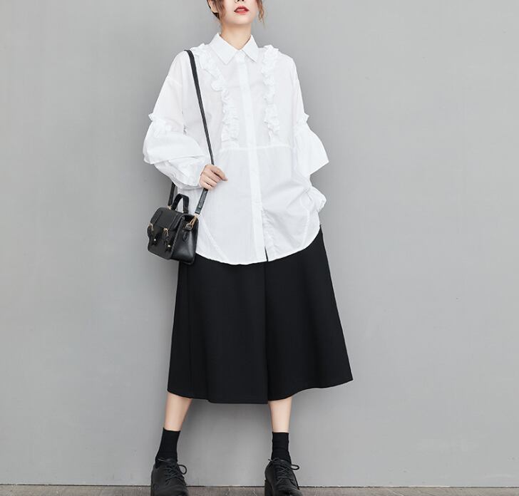 レディース トップス シャツ 丈長 長袖 襟付き ワイド フェミニン フリル 前開き きれいめ シンプル カジュアル 上品 おしゃれ こなれ感 ラフ 個性的 エレガント モダン 主役級 存在感 かっちり 都会的 ベーシック ナチュラル 無地 春 夏 ロングシーズン デート お出かけ 公園 女子会 休日 ショッピング カフェ モノトーン コーデ 楽ちん 普段使い 着回し モテ 清楚 トレンド 流行 インスタ映え 定番 L XL ゆったり ホワイト ブラック ベーシックカラー 大人カラー カラバリ