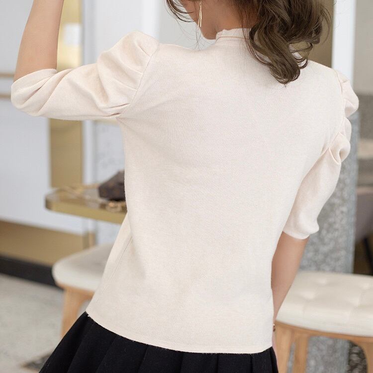 レディース トップス ニット プルオーバー サマーセーター サマーニット 半袖 ボリューム袖 パフスリーブ バルーン袖 ハイネック タイト スリム 細身 フェミニン 伸縮性 かわいい 大人可愛い きれいめ シンプル 上品 おしゃれ こなれ感 ガーリー エレガント ラブリー キュート クラシカル ベーシック ロマンティック ナチュラル 無地 春 夏 デート お出かけ 韓国 オルチャン 普段使い 着回し フリーサイズ 黒 ブラック 茶色 ブラウン 黄色 イエロー オフホワイト ブルー レッド ベーシックカラー