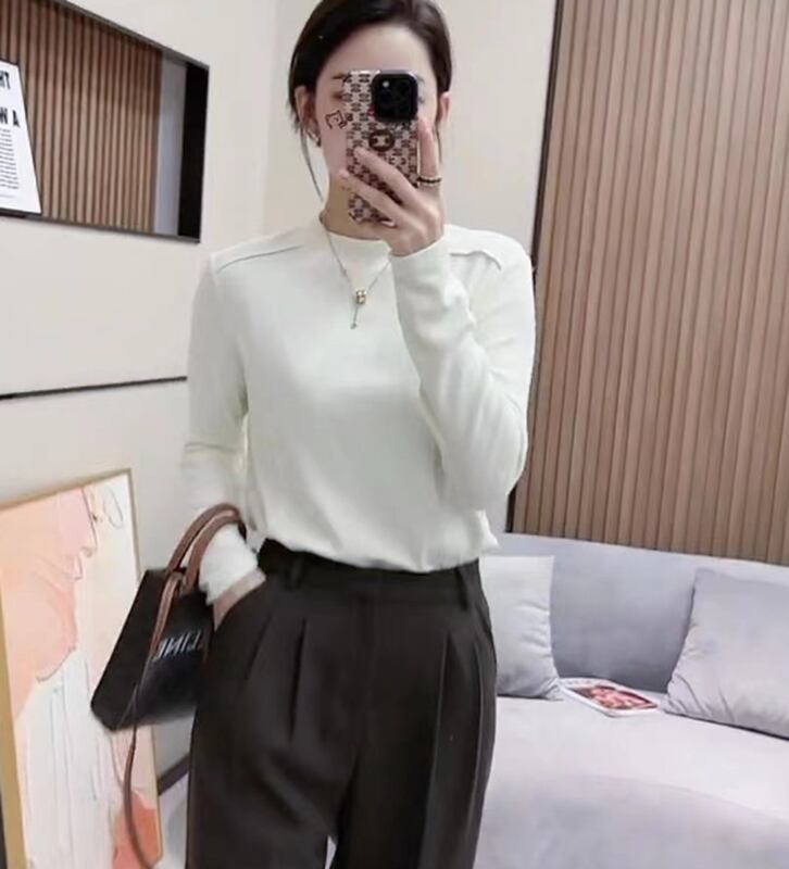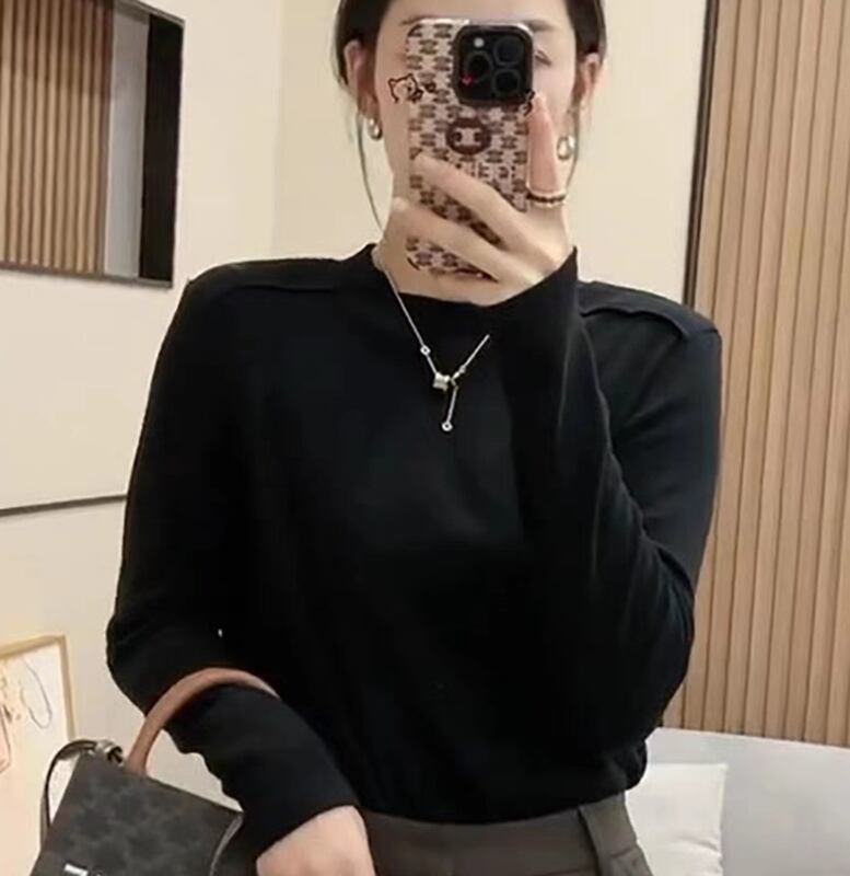 大人可愛い印象を与える、レディースの長袖ラウンドネックプルオーバー。