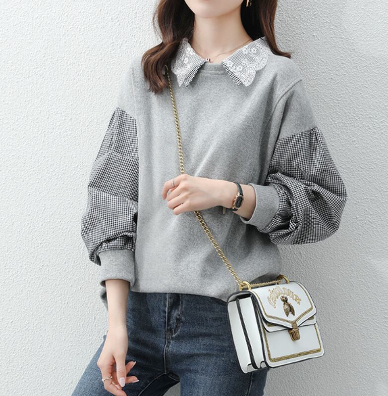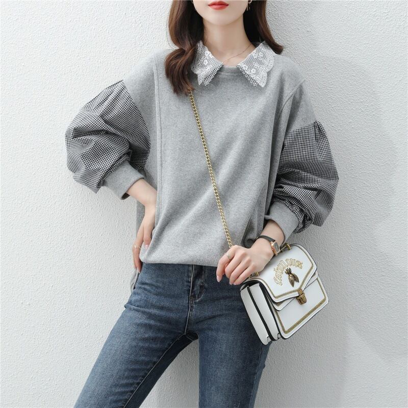 レディース トップス シャツ プルオーバー トレーナー チェックシャツ レイヤード風 長袖 ボリューム袖 萌袖 バルーン袖 襟付き レース 刺繍 異素材ミックス かわいい 大人可愛い きれいめ シンプル カジュアル 上品 おしゃれ かっこいい レトロ ラフ モダン 都会的 ラグジュアリー クラシカル 無地 チェック 春 秋 冬 ロングシーズン デート お出かけ 公園 女子会 休日 バカンス ショッピング 重ね着 お揃い 双子 韓国 コーデ 楽ちん 普段使い 着回し インスタ映え ゆったり サイズ展開