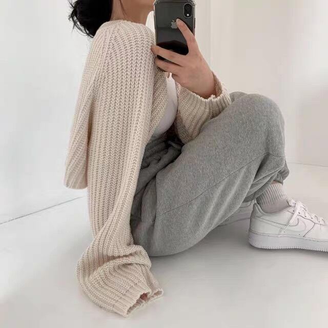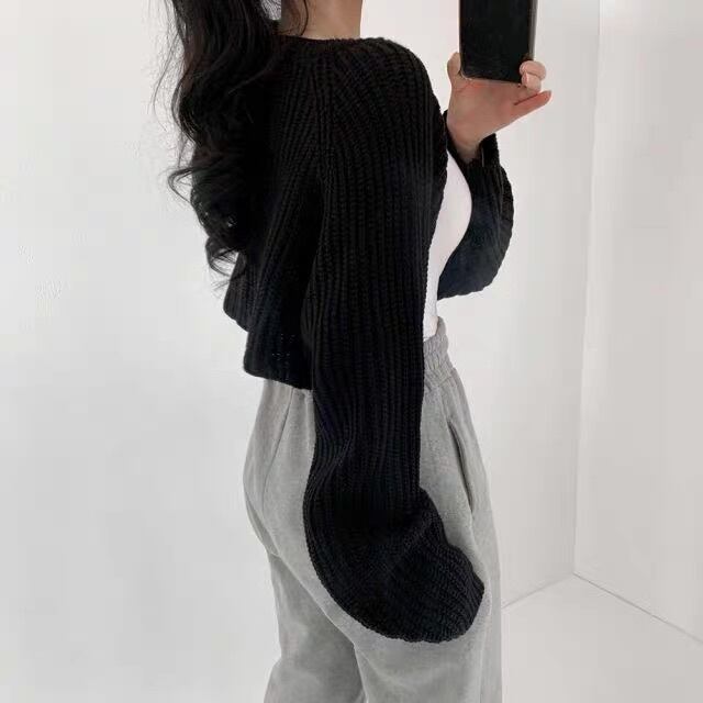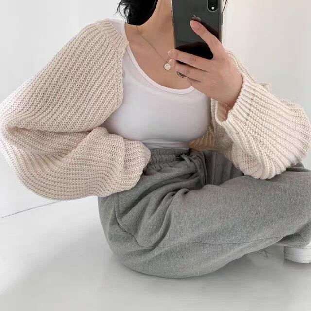 ボリューム袖がふんわり可愛いショート丈ニットカーデでつくる秋冬スタイル。