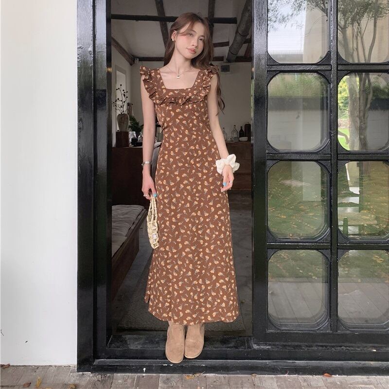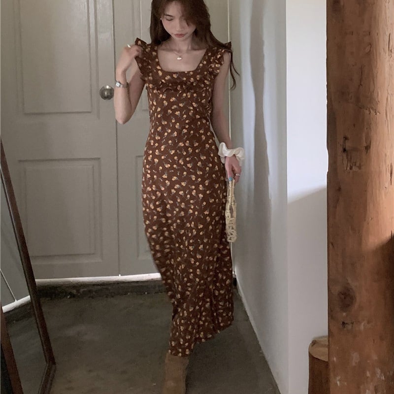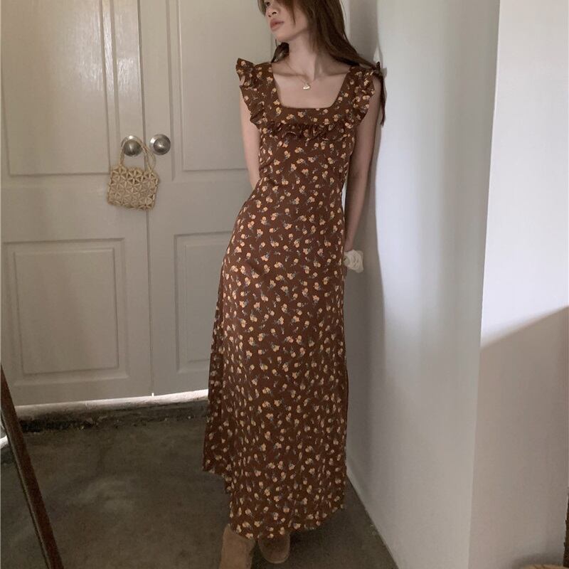 レディース ワンピース ロング フルレングス 袖なし ノースリーブ フライングスリーブ Vネック スクエアネック 襟なし ノーカラー スリム 細身 フェミニン フリル ハイウエスト かわいい 大人可愛い きれいめ 上品 おしゃれ レトロ こなれ感 ガーリー エレガント 存在感 ラブリー キュート クラシカル ロマンティック 花柄 フラワー 夏 10代 20代 学校 デート お出かけ 女子会 休日 ライブ カフェ コーデ 楽ちん 普段使い 着回し モテ 清楚 インスタ映え 定番 S M L XL 黒 茶色