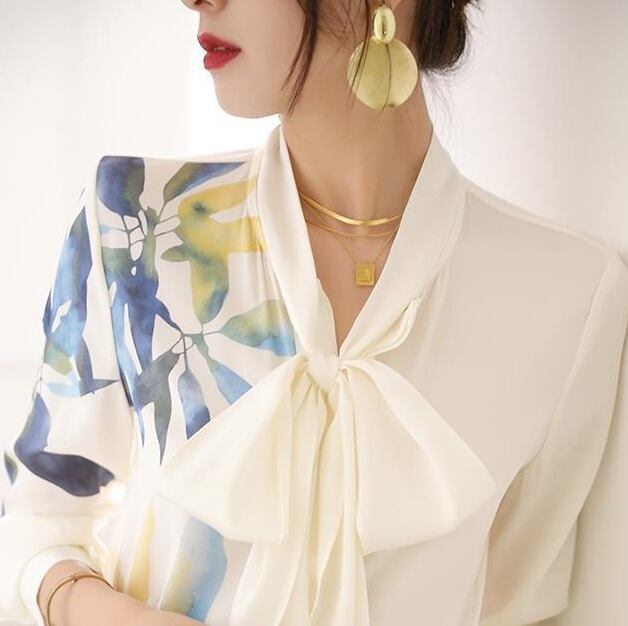 レディース トップス シャツ ブラウス 長袖 Vネック りぼんタイ ネクタイ ネクタイ付き フェミニン 異国風 かわいい 大人可愛い 上品 おしゃれ かっこいい レトロ アジアン エスニック エキゾチック こなれ感 ラフ ガーリー エレガント ヴィンテージ ラブリー キュート クラシカル ワイルド 花柄 フラワー ストライプ 総柄 春 秋 重ね着 韓国 オルチャン 体型カバー 普段使い 着回し 流行 S M L XL 小さいサイズ 大きいサイズ 白 ホワイト 茶色 ブラウン 黄色 イエロー 水色 ブルー