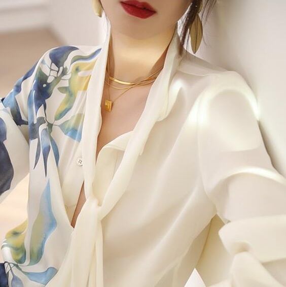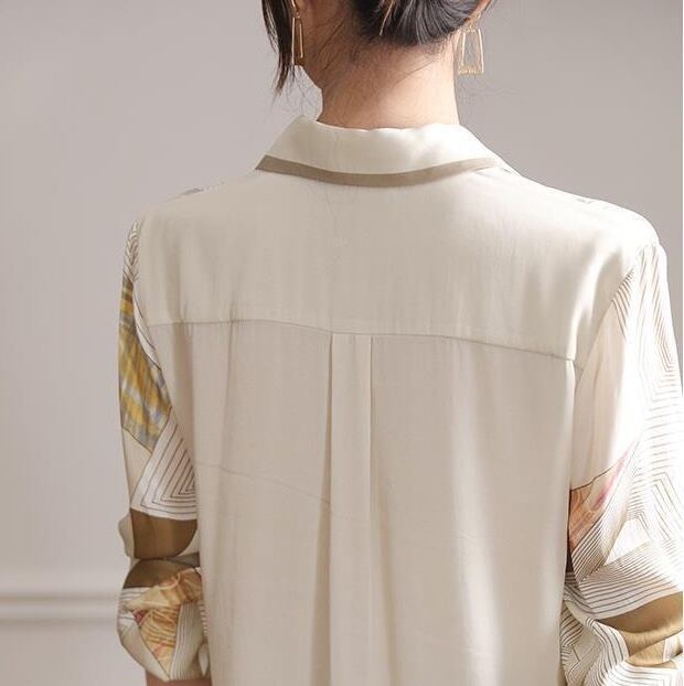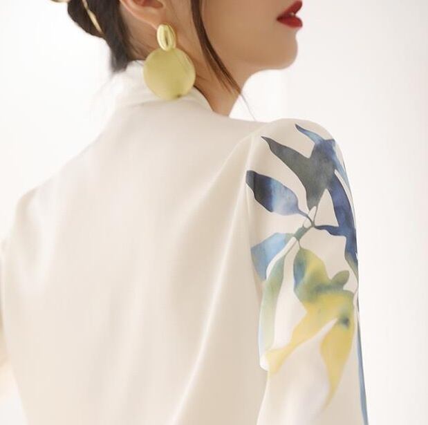 上品さとエキゾチックなムードが絶妙に溶け合い視線を惹きつける主役級トップス。