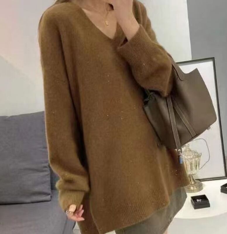 VネックのIラインシルエットは、シンプルながらも上品な印象を与え、カジュアルやきれいめスタイルまで幅広く対応します。