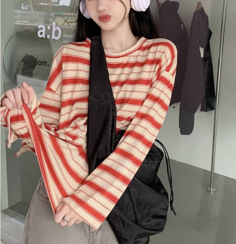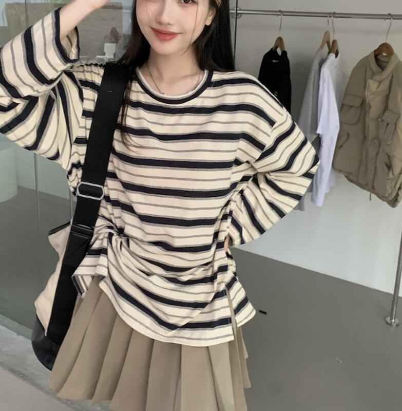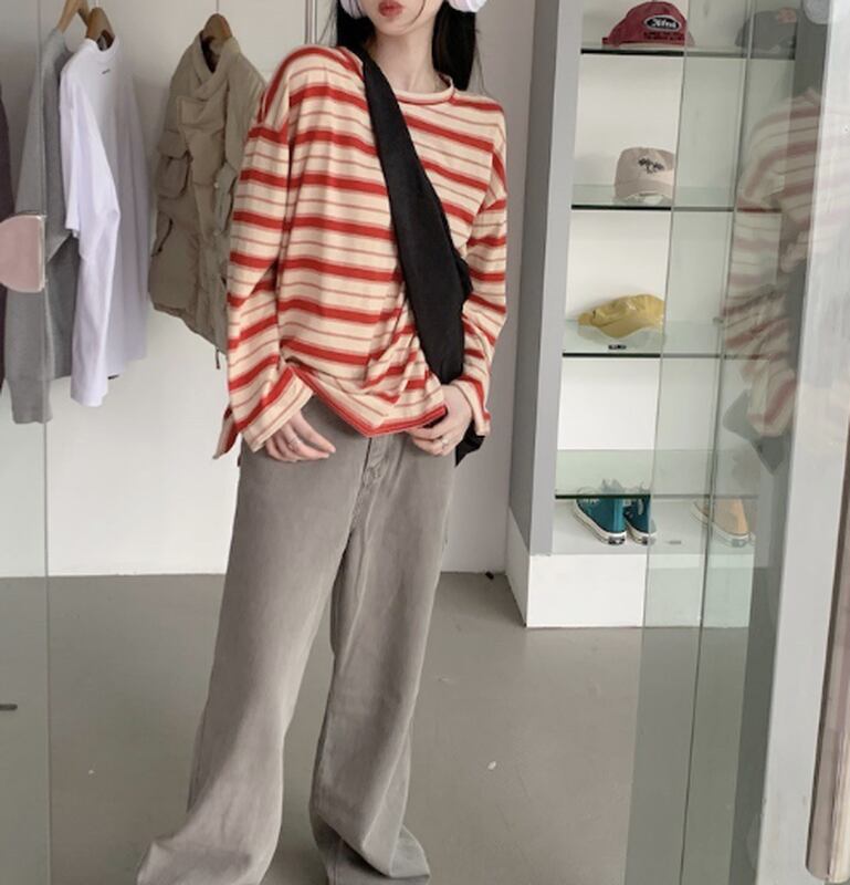 大人可愛いスタイルを演出する定番ボーダーロンT。