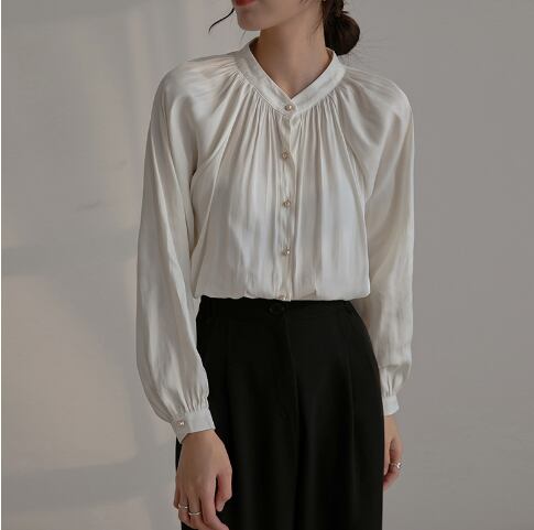 レディース トップス シャツ ブラウス 前開き 普通丈 長袖 襟なし ワイド フェミニン 大人可愛い きれいめ シンプル カジュアル 上品 おしゃれ こなれ感 ラフ モード系 エレガント モダン 主役級 存在感 ラブリー キュート 都会的 ベーシック ナチュラル 無地 春 秋 デート お出かけ 女子会 休日 ショッピング カフェ オルチャン コーデ 楽ちん 普段使い 着回し モテ 清楚 トレンド 流行 インスタ映え 定番 S M L ゆったり サイズ展開 アプリコット ベーシックカラー 大人カラー