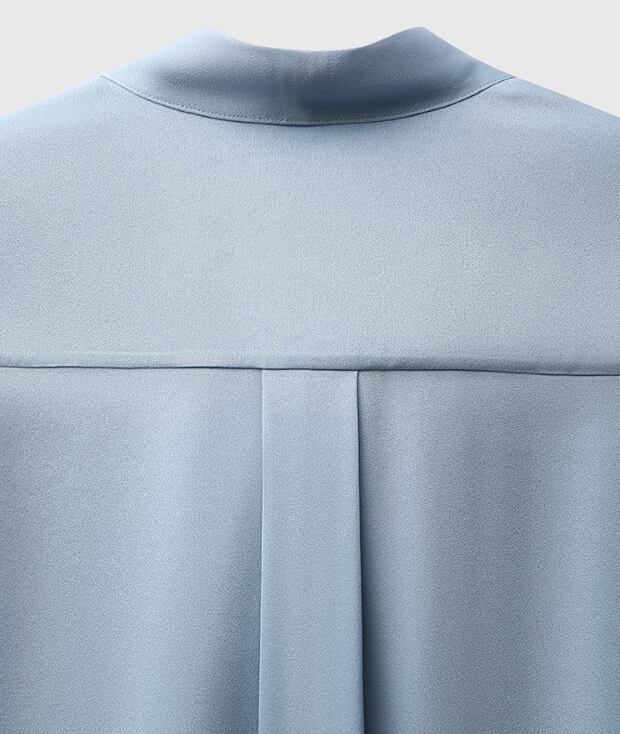 襟なし×前開きデザインが、フェミニンでこなれた大人の雰囲気を演出します。