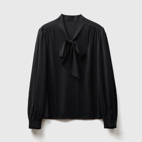 上品さとトレンド感を兼ね備えた、りぼんタイ付きVネックブラウス。