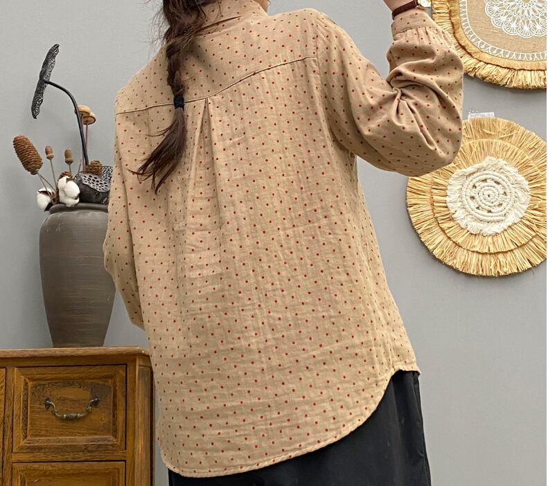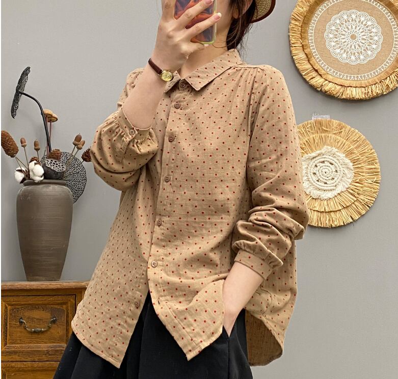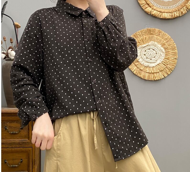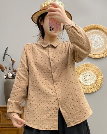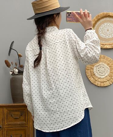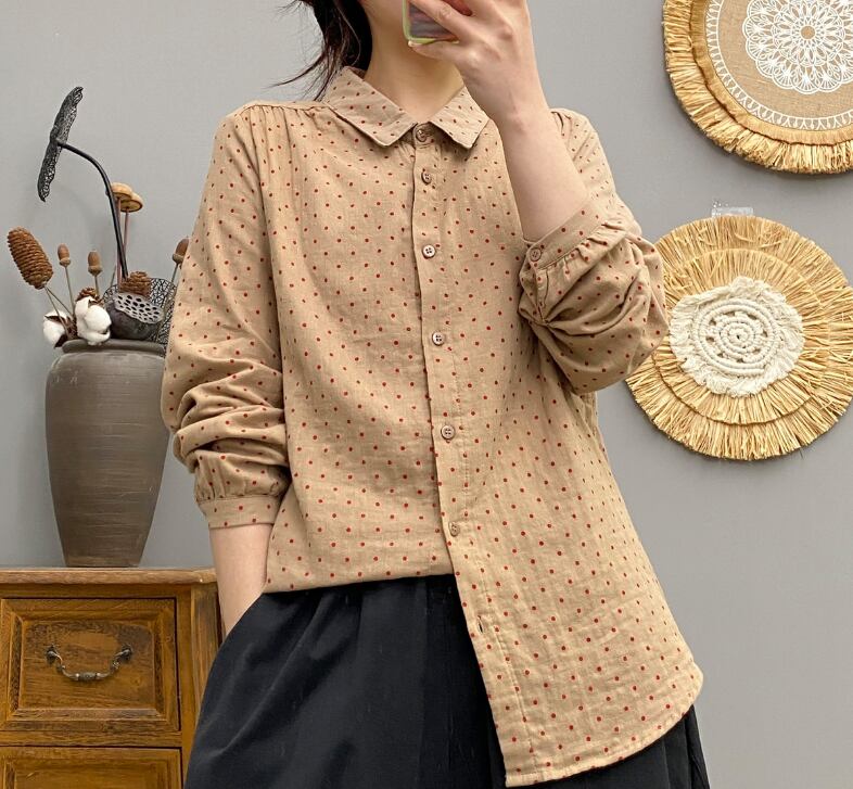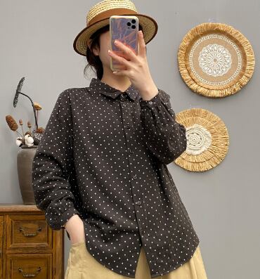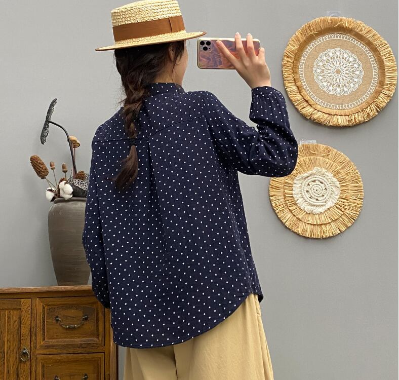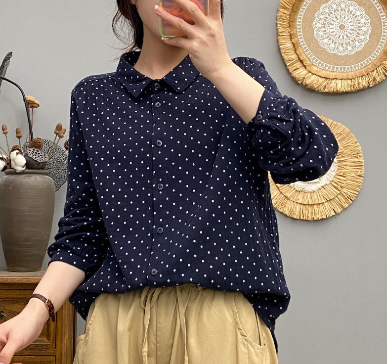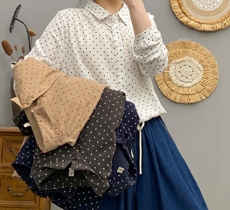 レディース トップス シャツ ブラウス 普通丈 長袖 襟付き ワイド ストリート 前開き 大人可愛い きれいめ シンプル カジュアル おしゃれ こなれ感 ラフ ルーズ クール モード系 主役級 存在感 都会的 ベーシック ナチュラル ドット柄 水玉 総柄 春 秋 デート お出かけ 旅行 女子会 休日 ショッピング カフェ 普段使い 着回し モテ 清楚 トレンド 流行 インスタ映え 定番 S M L ビッグ サイズ展開 ホワイト カーキ ネイビー ベーシックカラー 大人カラー カラバリ ダークブラウン